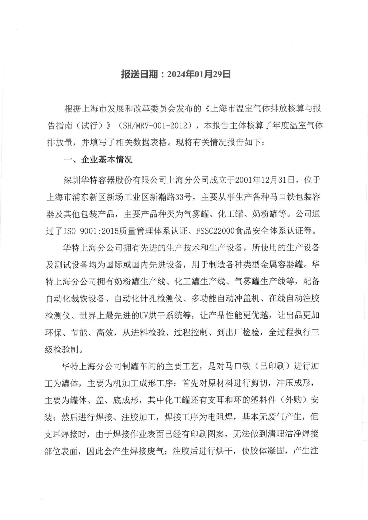 温室气体排放报告